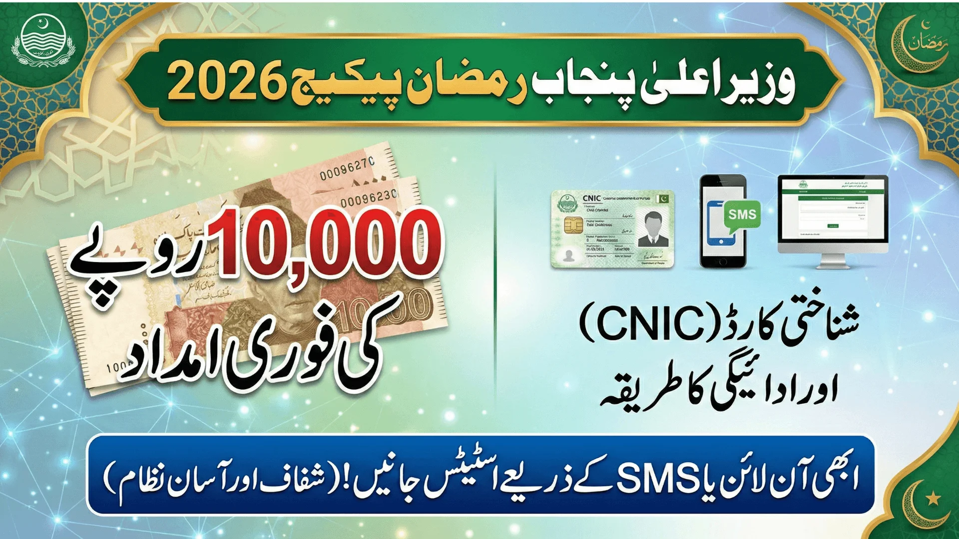 CM Punjab 10000 Ramzan Package 2026 CM Punjab 10000 Ramzan Package 2026 CNIC Verification & Payment Process explains how eligible families in Punjab can confirm....
