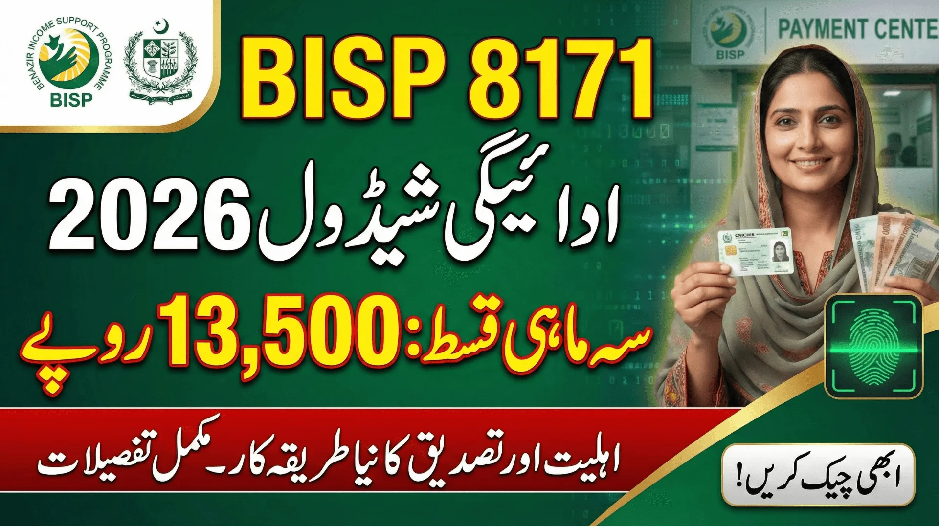 BISP 8171 Payment Schedule 2026 marks a major step forward in Pakistan’s social protection system by continuing quarterly financial assistance of Rs. 13,500 for vulnerable households. As inflation continues to affect basic living costs, this installment has become a critical source of support for millions of families struggling to meet daily expenses. The Benazir Income Support Program has redesigned its distribution framework for 2026 to ensure transparency, fairness, and smooth access to payments across all provinces. This guide explains the updated payment framework, revised eligibility rules, verification methods, and payment channels in simple and clear language, helping beneficiaries avoid confusion, delays, or deductions.