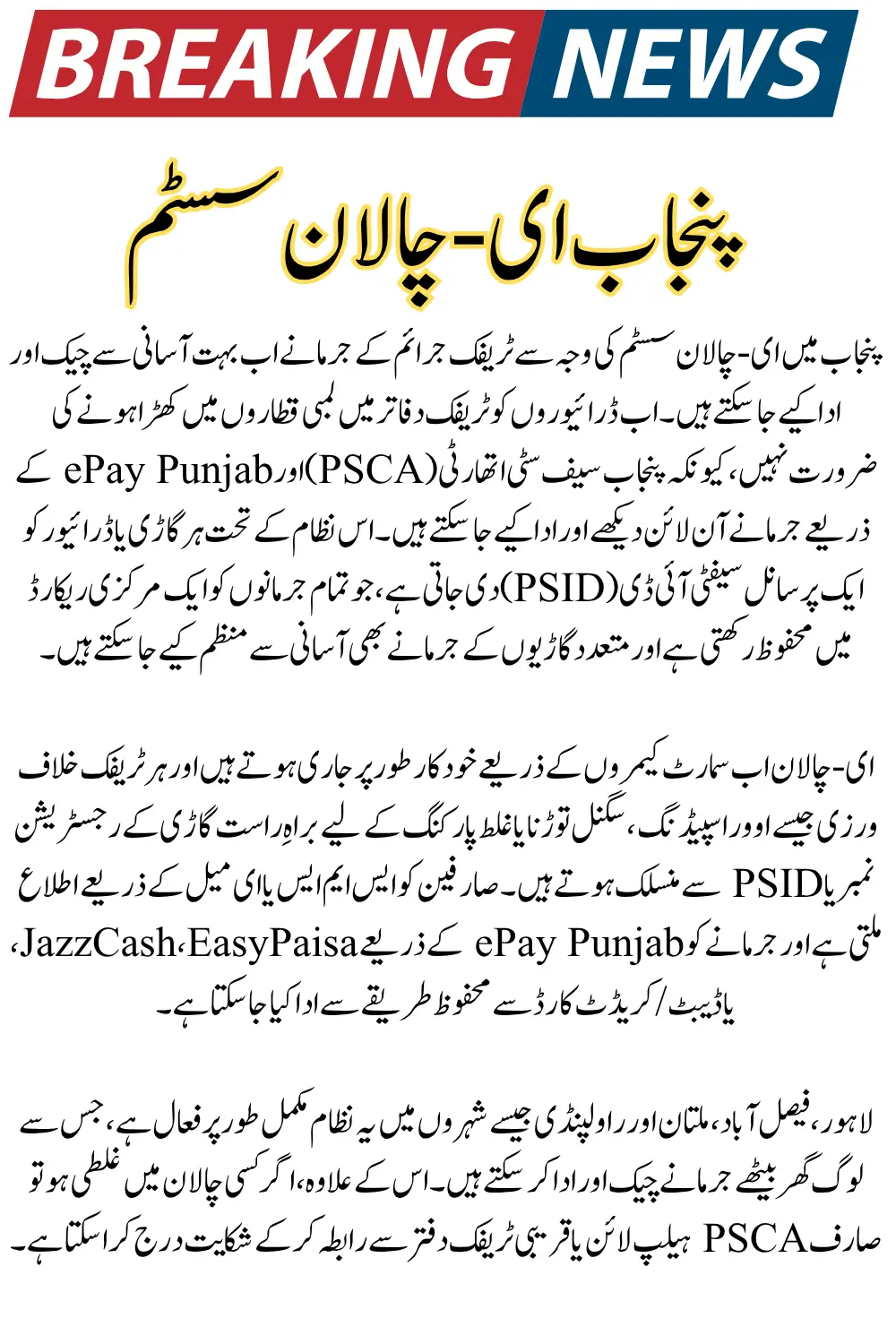 - Drivers can check and pay fines online using the ePay Punjab portal.