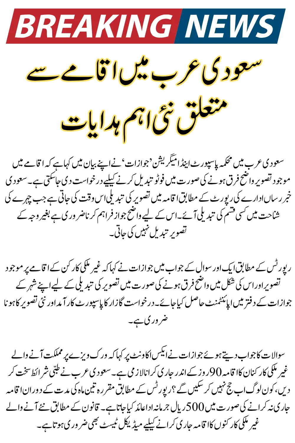 Saudi Arabia Residency Important Updates