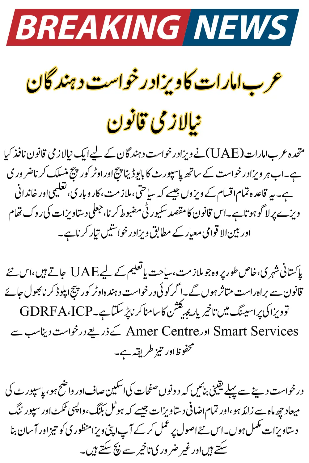 This new rule has been made mandatory for all nationalities, including Pakistani, Indian, Bangladeshi, and other South Asian travelers. The UAE aims to make its digital immigration system more secure, transparent, and globally standardized.